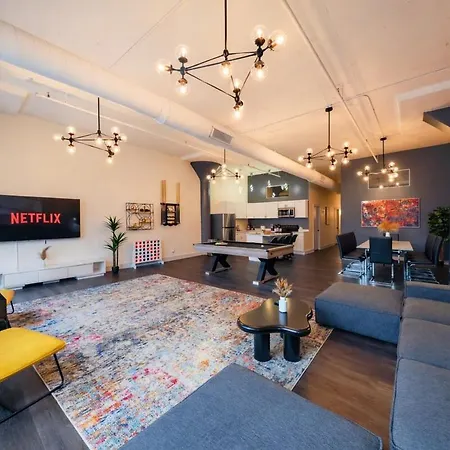 Tijdens een verblijf in 4-slaapkamer Massive 6Br Luxury Suite Sleeps 12 Guests With Jacuzzi & Pool Table Perfect Group Stay And Optional Parking Near Mccormick Place & Soldier Field Chicago kunnen gasten zich ontspannen op een zonneterras binnen een korte wandeling van 25 minuten van het Soldier Field Stadion. Bij het 4-badkamer appartement zijn draadloos internet evenals privéparkeren beschikbaar.