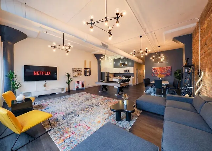 Er wordt een ingerichte keuken met een oven en een vaatwasser geboden voor het comfortabel koken in deze accommodatie. Chicago Union treinstation is ervandaan en Cermak & Prairie bushalte op slechts 5-minuten wandelafstand van Massive 6Br Luxury Suite Sleeps 12 Guests With Jacuzzi & Pool Table Perfect Group Stay And Optional Parking Near Mccormick Place & Soldier Field. Een bubbelbad die beschikbaar zijn bij Massive 6Br Luxury Suite Sleeps 12 Guests With Jacuzzi & Pool Table Perfect Group Stay And Optional Parking Near Mccormick Place & Soldier Field zorgen voor een aangename ervaring. Gasten kunnen profiteren van biljart om hun fitnessdoelen te verbeteren.